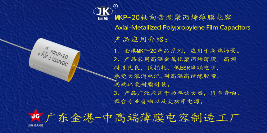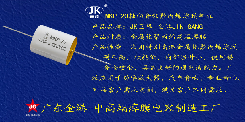 産品(pǐn)品牌 :JK巨庫金港(gang)JINGANG 産品材質: 金屬(shǔ)化聚丙烯高溫(wen)薄膜 産品性能(néng): 采用高溫金屬(shu)化聚丙烯薄膜(mó) 耐壓高,損耗低(dī),内部溫升小,使(shǐ)用錫合金噴金(jīn), 具備良好的通(tōng)電流能力。 産品(pin)作用: 廣泛應用(yòng)于功率放大器(qi),汽車音響、專業(yè)音響。 定制加工(gong) :可按客戶需求(qiu)定制,滿足客戶(hù)不同需求。