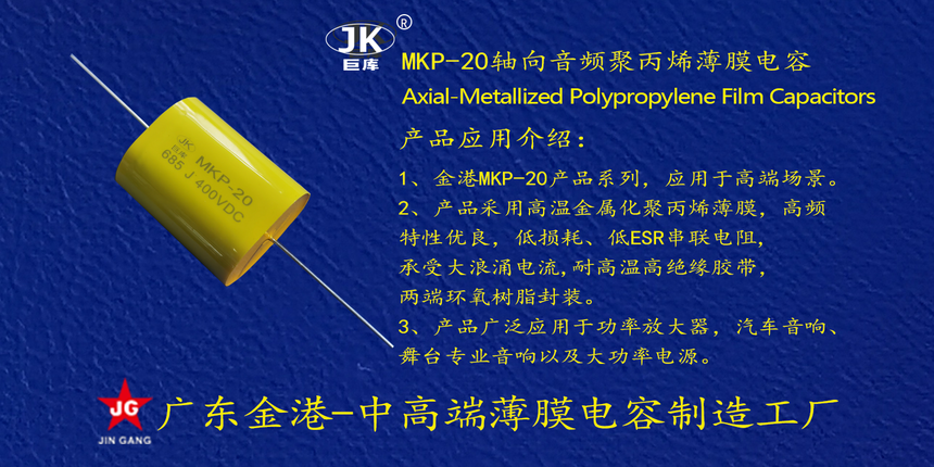 産品(pin)品牌 :JK巨(ju)庫金港(gang)JINGANG 産品材(cai)質: 金屬(shǔ)化聚丙(bǐng)烯高溫(wen)薄膜 産(chan)品性能(neng): 采用高(gao)溫金屬(shǔ)化聚丙(bing)烯薄膜(mó) 耐壓高(gao),損耗低(dī),内部溫(wēn)升小,使(shǐ)用錫合(he)金噴金(jīn), 具備良(liang)好的通(tōng)電流能(néng)力。 産品(pin)作用: 廣(guǎng)泛應用(yòng)于功率(lǜ)放大器(qi),汽車音(yin)響、專業(ye)音響。 定(ding)制加工(gōng) :可按客(kè)戶需求(qiu)定制,滿(man)足客戶(hu)不同需(xu)求。