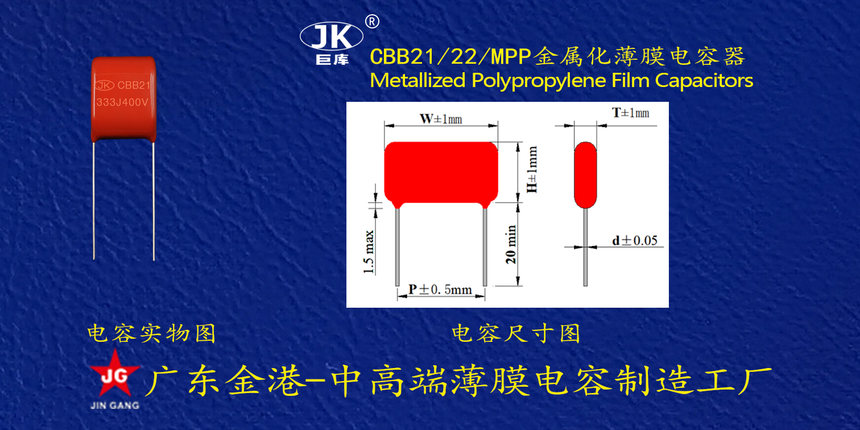 産品品(pǐn)牌 :JK巨庫金港(gang)JINGANG 産品材質: 金(jin)屬化聚丙烯(xi)高溫薄膜 産(chan)品性能: 采用(yong)高溫金屬化(hua)聚丙烯薄膜(mo) 耐壓高,損耗(hào)低,内部溫升(sheng)小,使用錫合(hé)金噴金, 具備(bèi)良好的高脈(mo)沖電流能力(lì)充放電性能(néng)優異。 産品作(zuò)用: 廣泛應用(yong)于各種高頻(pin),直流,交流和(he)脈沖電路中(zhong)。 定制加工 :可(kě)按客戶需求(qiú)定制,滿足客(kè)戶不同需求(qiú)。