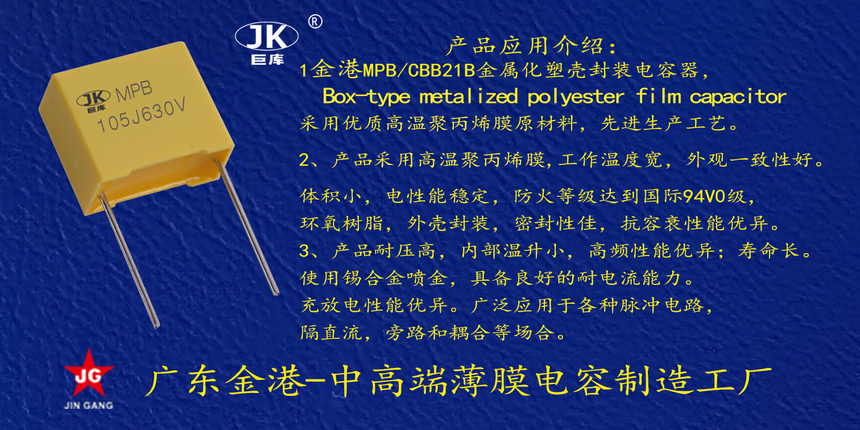 産品品牌(pái) :JK巨庫金港JINGANG 産品(pǐn)材質: 高溫金屬(shu)化聚丙烯,塑料(liào)外殼封裝 産品(pin)性能: 采用高溫(wēn)金屬化聚丙烯(xi),耐壓高産品一(yi)緻性好, 損耗低(dī),内部溫升小。錫(xi)合金噴金, 具備(bèi)良好的耐電流(liú)能力。充放電性(xìng)能優異。 産品作(zuò)用: 應用于高壓(ya)高頻脈沖電路(lù),諧振電路,等場(chǎng)合。
